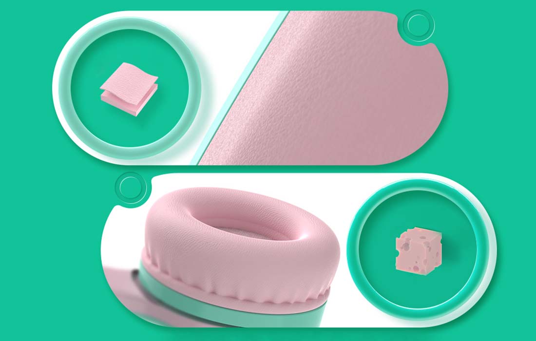 Die Kopfhörer bestehen aus PU-Material, das sicher und angenehm auf der Haut ist, und in den Ohrenschützern befindet sich ein weicher Schwamm.