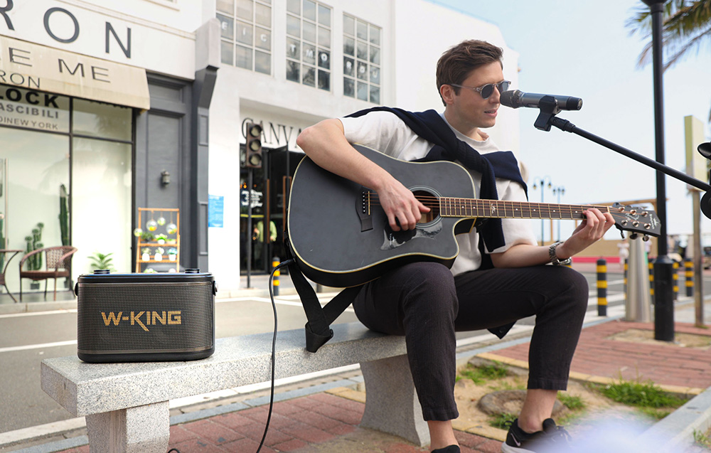 Der W-KING H10 S wird über Bluetooth 5.0 mit Ihrem kompatiblen Gerät verbunden, sodass Sie eine schnelle und stabile Signalübertragung von bis zu 10 Metern genießen können. Darüber hinaus verfügt der Lautsprecher über einen integrierten TF-Kartensteckplatz, USB- und AUX-Eingänge sowie Anschlüsse für eine Gitarre und ein Mikrofon.