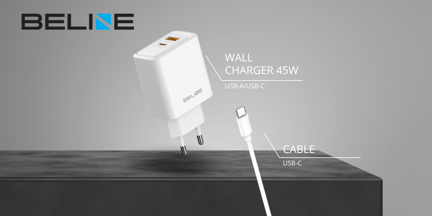 | Typ | Beline 45W Wandladegerät USB-A/USB-C + USB-C/USB-C Kabel BLN2CW45C |