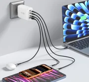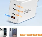 Mit drei Typ-C-Anschlüssen und einem USB-A-Anschluss bietet das Ladegerät große Flexibilität für den täglichen Gebrauch. Der Typ-C1-Hauptanschluss liefert 140 W mit 28 V-Unterstützung, was perfekt zum Laden des 16" MacBook Pro und anderer anspruchsvoller Laptops ist. Der zweite Typ-C2-Anschluss bietet 100 W, der dritte Typ-C3-Anschluss bietet 65 W und der USB-A-Anschluss liefert 60 W mit Super Charge-Unterstützung. Alle vier Anschlüsse können dank intelligenter Stromverteilung gleichzeitig betrieben werden.