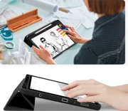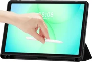 Der integrierte Bildschirmschutz kann als Ständer für eine bequemere Nutzung des Tablets verwendet werden und sorgt dank der Technologie zum Aufwecken und Einschlafen des Geräts auch für eine etwas längere Akkulaufzeit.