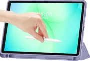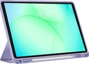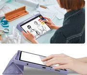 Der integrierte Bildschirmschutz kann als Ständer für eine bequemere Nutzung des Tablets verwendet werden und sorgt dank der Technologie zum Aufwecken und Einschlafen des Geräts auch für eine etwas längere Akkulaufzeit.