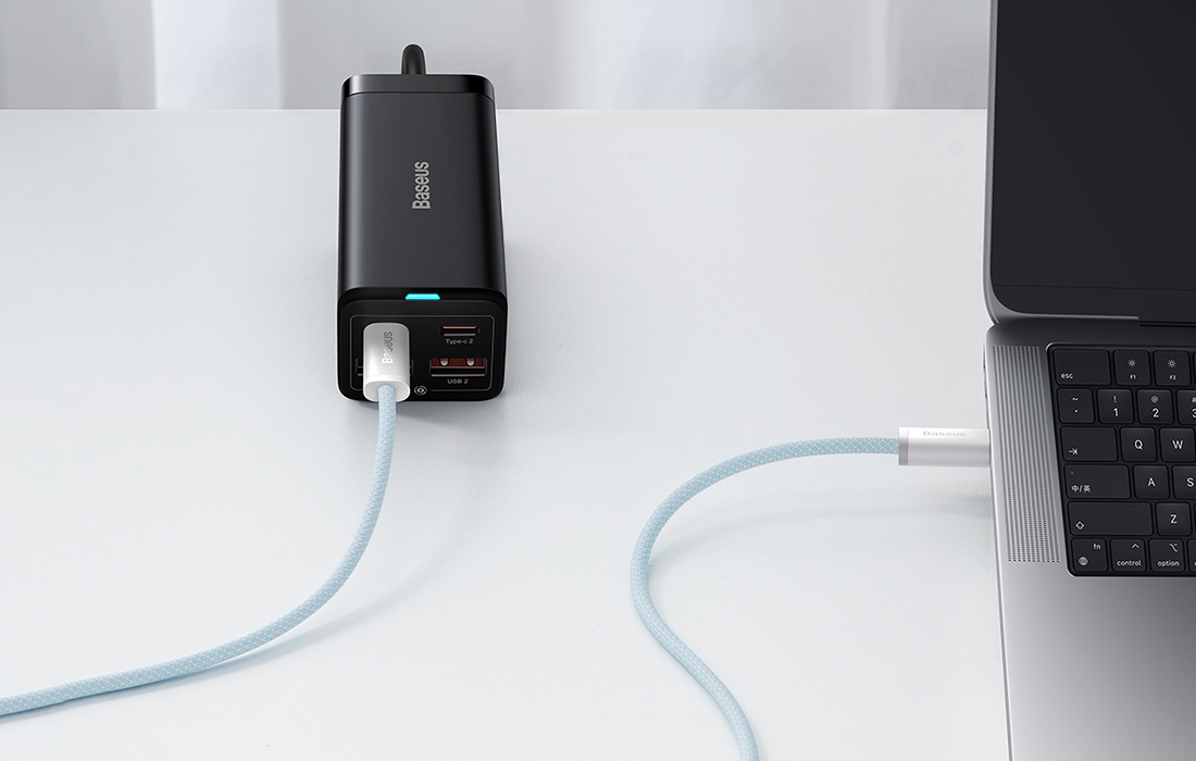 Jetzt können Sie Ihre Geräte in kürzester Zeit aufladen. Das USB-C-auf-USB-C-Kabel von Baseus wird mit bis zu 100 W aufgeladen und ermöglicht die Übertragung von Dateien mit bis zu 480 Mbit/s. Es ist auch extrem haltbar und widerstandsfähig gegen Beschädigungen. Der fortschrittliche E-Marker-Chip sorgt für eine sichere Verwendung.