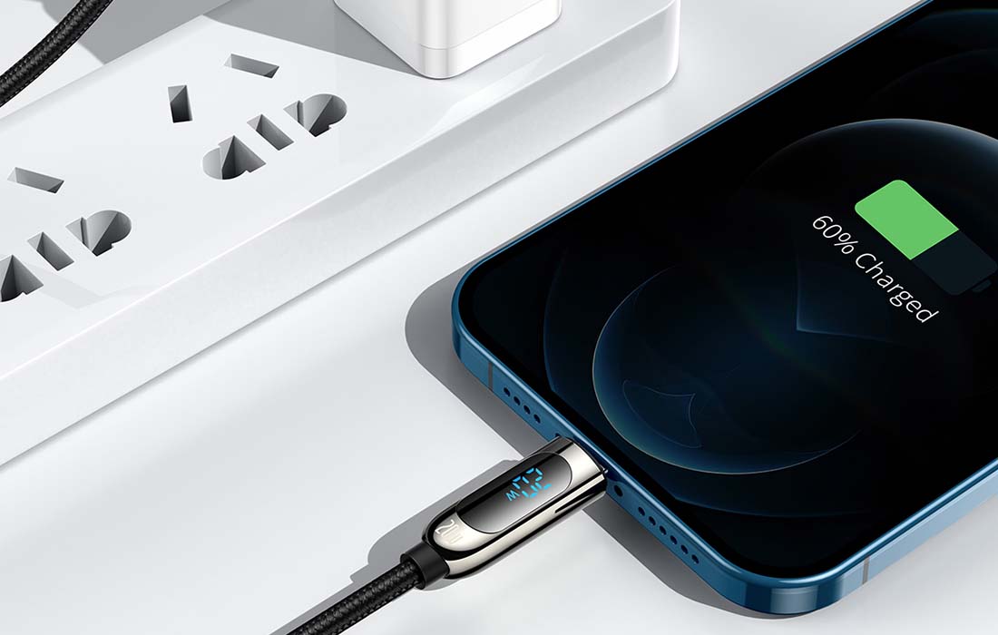 Jetzt können Sie die aktuelle Ladegeschwindigkeit mit nur einem Blick überprüfen. Das Kabel ist mit einem kleinen, aber gut lesbaren Bildschirm ausgestattet, der seine Leistung in Echtzeit anzeigt. So können Sie die Leistung verfolgen und ständig auf nützliche und dennoch zuverlässige Informationen zugreifen.