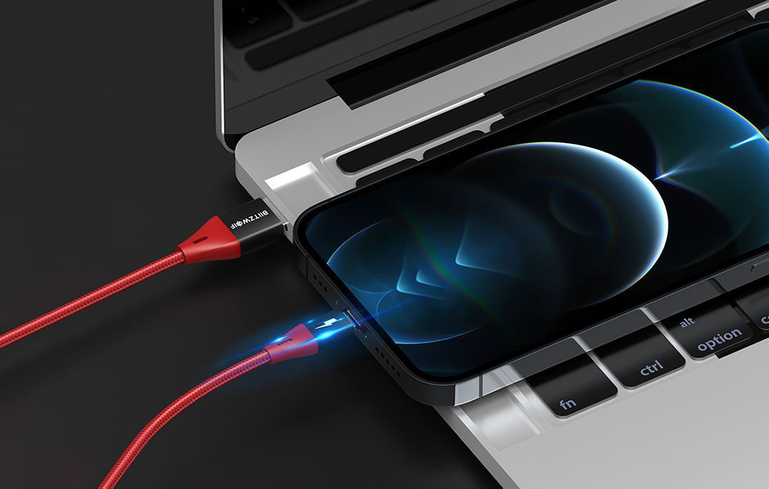 Das 1,8 m lange Lightning-Kabel von BlitzWolf bietet volle Kompatibilität mit iPhone- und iPod-Geräten. Es ermöglicht eine schnelle Datenübertragung und ein sicheres Laden. Alles dank des MFi-zertifizierten Chipsatzes. Dank der Tatsache, dass es aus Materialien höchster Qualität hergestellt ist, ist es resistent gegen geringfügige mechanische Beschädigungen und Brüche an den kritischsten Stellen.