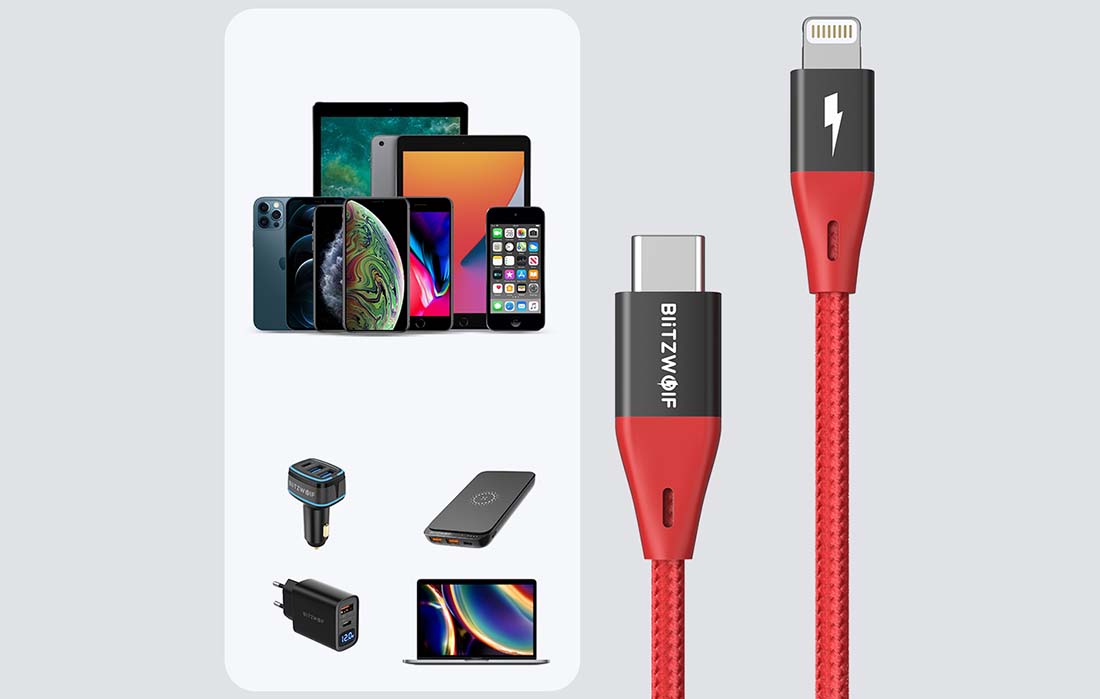 Das Kabel der Marke BlitzWolf ist Apple MFi-zertifiziert, bietet 20 W PD-Schnellladung, 480 Mbit/s Datenübertragungsrate, ist langlebig und robust und weitgehend kompatibel.