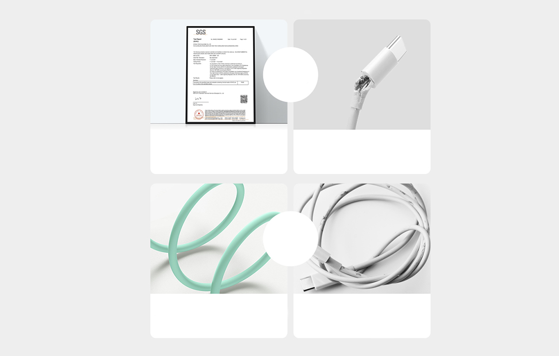 Das Kabel ist mit strapazierfähigem Silikon geschützt, wodurch es viel sicherer ist als ein normales Gummikabel. Das Zubehör ist SGS-zertifiziert, verheddert sich nicht und bricht nicht und ist wischfest. Wer ein Gummikabel besitzt, wird sofort einen riesigen Unterschied bemerken.
