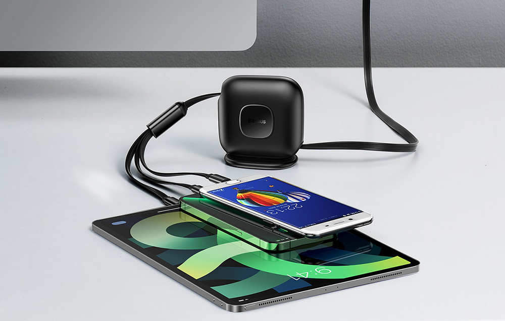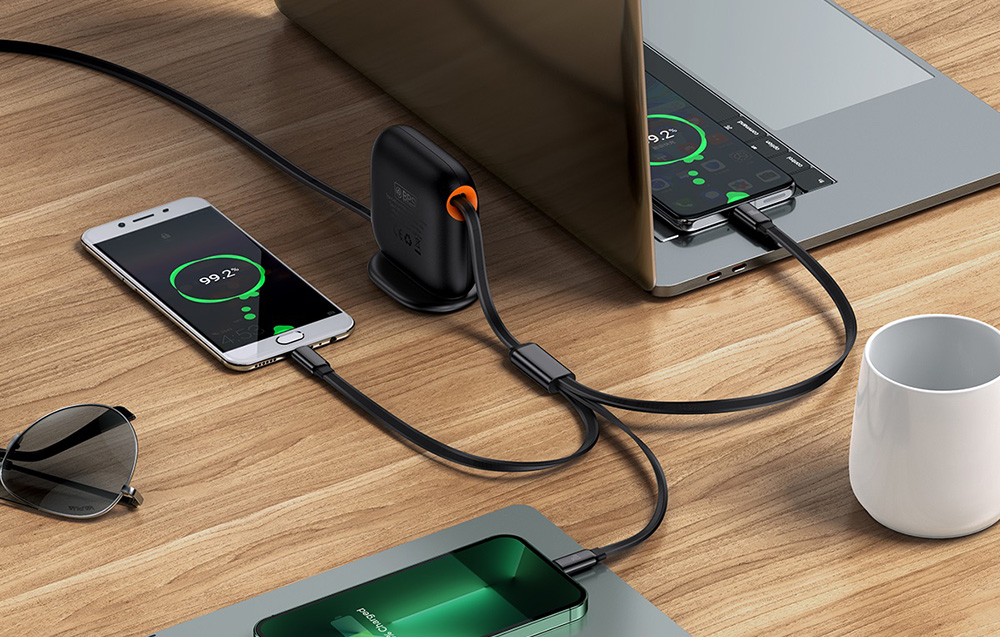 Sie müssen nicht länger auf unbestimmte Zeit warten, bis Ihr Gerät aufgeladen ist! Das Baseus-Kabel verfügt über 3 Anschlüsse, sodass Sie die Stromversorgung mehrerer Geräte gleichzeitig erneuern können. Über den Lightning-Anschluss (20 Watt) können Sie ein iPhone 8-13 aufladen, während der USB-C (100 Watt) Geräte von Apple, Huawei, Xiaomi, Samsung usw. auflädt. In der Zwischenzeit laden Sie eine Powerbank, einen Lautsprecher oder einen Lüfter über den Micro-USB-Anschluss auf. Darüber hinaus laden Sie mit dem PD 100 W ein MacBook Pro 2019 in etwa 2 h und ein iPhone 13 Pro Max in etwa 1,5 h auf.