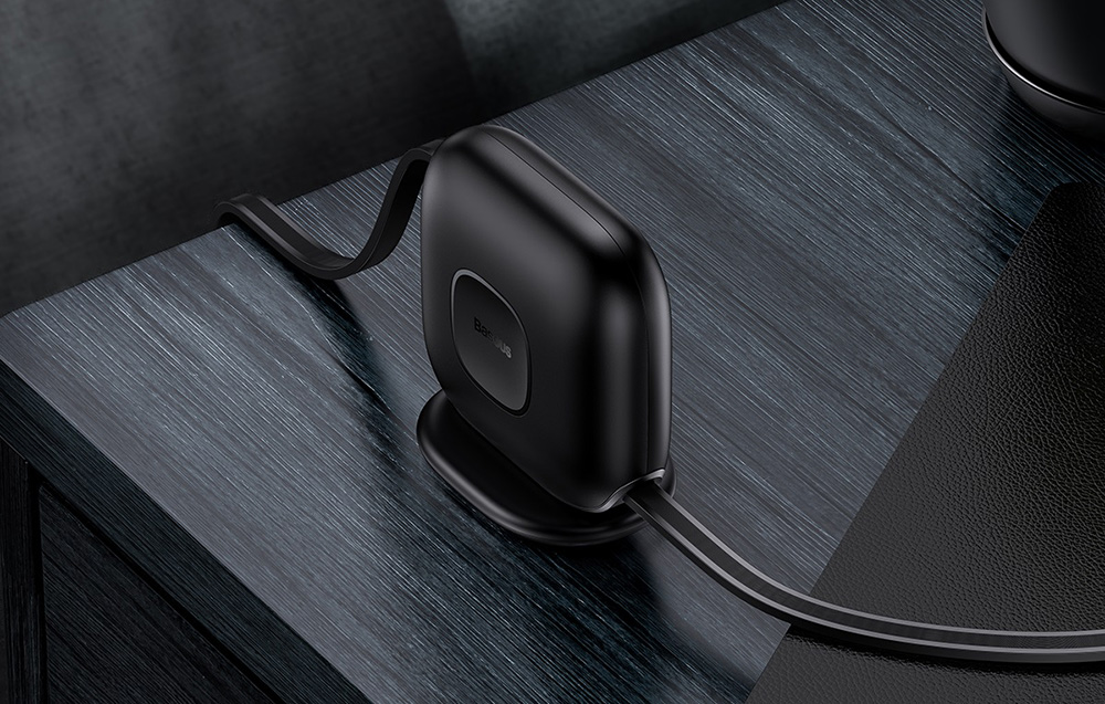 Dies ist nicht das Ende der Vorteile des Baseus-Kabels. Dank des 3M-Aufklebers können Sie das Kabel an Ihrer Tischplatte, Ihrem Nachttisch oder an einem Ort Ihrer Wahl im Auto befestigen. Auf diese Weise können Sie es immer bei sich haben und wiederholt seine Position ändern. Darüber hinaus lässt sich der Organizer für eine noch bequemere Verwendung um 360° drehen.