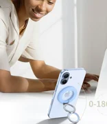 Das Design des Halters ermöglicht eine stufenlose Einstellung des Winkels von 0-180°, so dass die Position des Telefons beim Anschauen von Filmen, beim Arbeiten oder bei Videotelefonaten leicht angepasst werden kann. Der zentrale Ring lässt sich um maximal 90 Grad neigen, sodass das Telefon stabil auf einer flachen Oberfläche liegt oder bequemer in der Hand gehalten werden kann.
