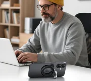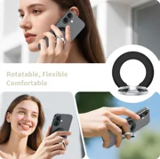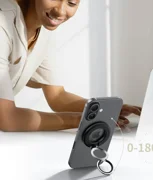 Das Design des Halters ermöglicht eine stufenlose Einstellung des Winkels von 0-180°, so dass die Position des Telefons beim Anschauen von Filmen, beim Arbeiten oder bei Videotelefonaten leicht angepasst werden kann. Der zentrale Ring lässt sich um maximal 90 Grad neigen, sodass das Telefon stabil auf einer flachen Oberfläche liegt oder bequemer in der Hand gehalten werden kann.