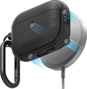 Schützen Sie Ihre Kopfhörer mit der robusten Onyx-Tasche von Rinkge. Das Etui bietetden Komfort des kabellosen Magsafe-Ladens, das sicher und schnell Energie auflädt, ohne dass die Abdeckung abgenommen werden muss.