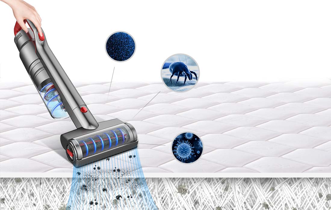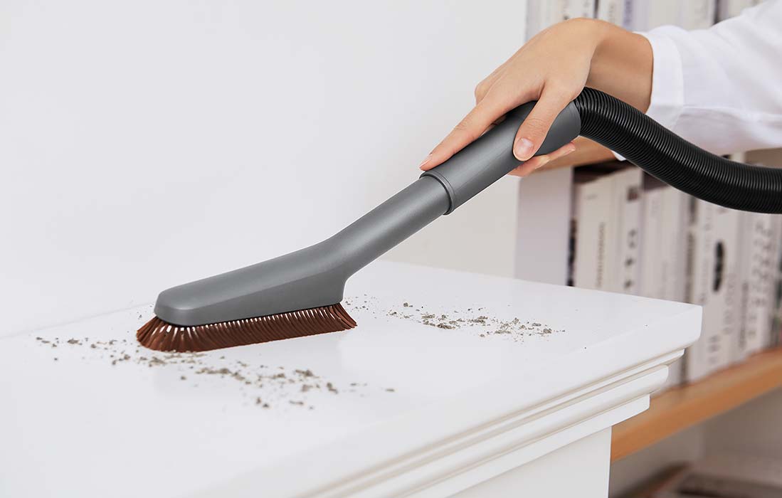 Reinigen Sie jede Ecke Ihres Hauses mit dem mitgelieferten Zubehör. Die elektrische Matratzenbürste beseitigt effektiv Staub, Hausstaubmilben und andere Allergene. Die Fugenbürste erleichtert das Absaugen der Aussparungen in Sofas, und die Möbelbürste eignet sich beispielsweise zum Reinigen von Tischplatten. Mit der weichen Bürste und dem flexiblen Schlauch können Sie schwer zugängliche Bereiche absaugen, und das Metallrohr und der zusätzliche Verlängerungsanschluss helfen Ihnen, höhere Stellen wie Regale oder die Oberseiten von Schränken zu erreichen.