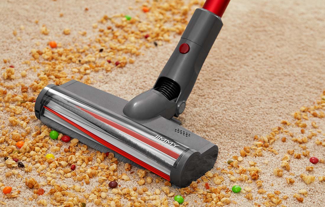 Was macht den Jimmy JV65 perfekt für verschiedene Bodentypen? Im Kit finden Sie 2 austauschbare Bürstenrollen. Einer von ihnen ist perfekt für Teppiche. Es entfernt effektiv Schmutz und Staub, die in dickem Haar verborgen sind. Harte Oberflächenwalze eignet sich zum Reinigen von Fliesen oder Paneelen. Durch die Kombination aus weichen und harten Fasern können Sie Krümel, hartnäckigen Schmutz und sogar Fußabdrücke effektiv reinigen. Darüber hinaus minimiert das spezielle Design der Bürste das Risiko, dass sich Haare darin verheddern.