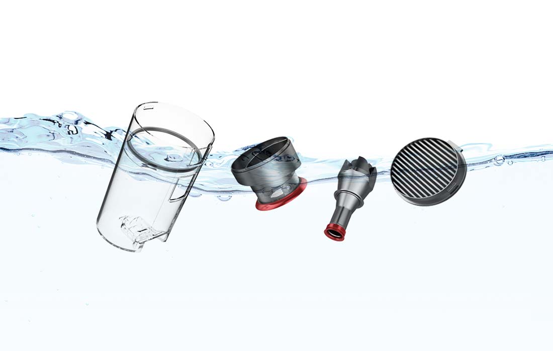 Während der Verwendung des Staubsaugers Jimmy JV65 kümmern Sie sich auch problemlos um die Hygiene der Anwendung und reduzieren das Risiko einer Bakterienvermehrung. Die Teile des Staubsaugers wie der Staubbehälter und der Filter können problemlos unter fließendem Wasser gewaschen werden. Dies verlängert ihre Lebensdauer und verringert die Häufigkeit des Austauschs. Das Entleeren des Staubbehälters ist extrem einfach - entfernen Sie ihn einfach durch Drücken der entsprechenden Taste.