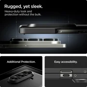 DieSpigen Tough Armor MagSafe-Tasche ist für diejenigen gedacht, dierobuster Schutz für ihr Gerät, ohne auf Ästhetik zu verzichten. Diezweischichtiges Design kombiniert flexibles Polyurethan (TPU), das Stöße effektiv absorbiert, mit einemhaltbarer Polycarbonat-Rahmen. Ergänzt wird das Ganze durch einematte Oberfläche das die Gebrauchsspuren begrenzt und ein professionelles Aussehen verleiht. Das Design ist für die intensive Nutzung unter verschiedenen Bedingungen gemacht, während einschlankes Profil und einfache Handhabung. Die perfekte Lösung für alle, die Wert auf die Kombination von Schutz und Funktionalität legen.