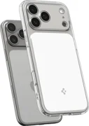 Die Spigen Ultra Hybrid "T" MagSafe Hülle ist ein moderner Schutz für Ihr iPhone, der einen transparenten Look, zuverlässige Haltbarkeit und die volle Funktionalität des MagSafe-Systems vereint. Die Hybrid-Technologie sorgt dafür, dass die Rückseite aus robustem Polycarbonat (PC) vor Kratzern schützt und gleichzeitig das ursprüngliche Design des Telefons zur Geltung bringt, während der flexible TPU-Rahmen Stöße abfedert und Stürze reduziert.