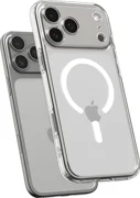 Spigen Ultra Hybrid Mag (MagSafe) ist eine Hülle, die minimalistischen Stil, transparentes Finish und fortschrittliche MagSafe-Funktionalität kombiniert - die perfekte Lösung für iPhone-Nutzer, die Schutz erwarten, ohne auf Aussehen und Komfort verzichten zu müssen. Die aus einer Mischung aus hartem Polycarbonat (PC) und flexiblem TPU gefertigte Hülle schützt das Telefon vor Kratzern, Stößen und täglicher Beanspruchung und lässt dabei die Schönheit des Originaldesigns des Geräts sichtbar bleiben. Die Ecken sind mit der Air Cushion-Technologie ausgestattet, die Stöße bei Stürzen abfedert, und die erhöhten Kanten um die Kamera und das Display bieten zusätzlichen Schutz vor dem Kontakt mit flachen Oberflächen.