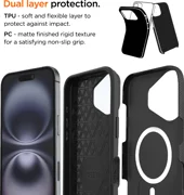 Eiger North Case - 2-Layer Rugged Protection mit MagSafe & Qi2 KompatibilitätDas Eiger North Case verfügt über ein robustes, zweilagiges Design, das einen hervorragenden Schutz gegen Stöße und Erschütterungen bietet und sich damit sowohl für den geschäftlichen Einsatz als auch für einen aktiven Lebensstil eignet. Dank der Kompatibilität mit MagSafe und kabellosem Qi2-Laden wird ein nahtloses Aufladen gewährleistet, ohne dass die Tasche entfernt werden muss. Das Gehäuse erfüllt die strengen MIL-SPEC 810H-Normen und ist für den Einsatz in rauen Umgebungen ausgelegt.Wesentliche Merkmale: