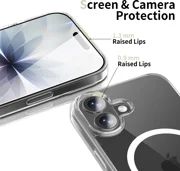 Ein klassisches, einteiliges Flexair Hybrid CC Magsafe-Gehäuse von Tech-Protect mit transparentem Finish, das die Linien und die ursprüngliche Silhouette des Geräts hervorhebt.