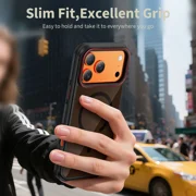 Darüber hinaus ist das Gehäuse mit MagSafe kompatibel und ermöglicht die einfache und bequeme Verwendung von Zubehör. Tastenkappen sorgen für volle Funktionalität und Komfort, während der erhöhte Objektivrahmen aus Metall zusätzlichen Schutz für die Kamera bietet.