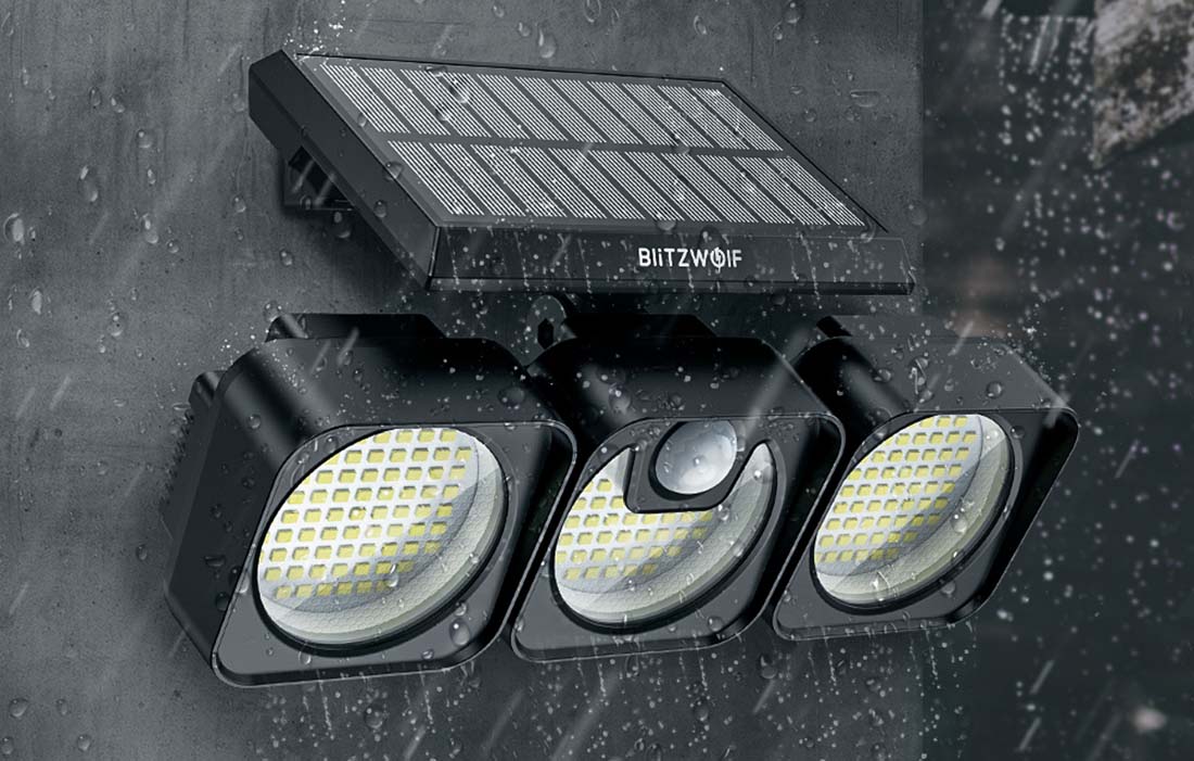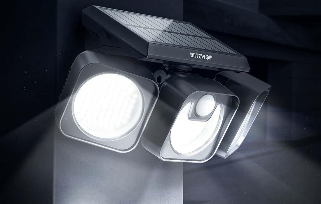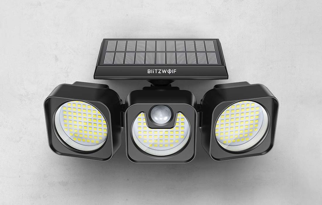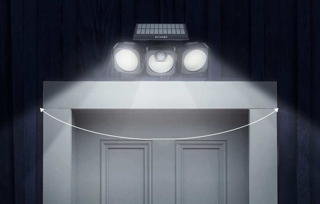 Die dreifache Lichtquelle bietet einen Beleuchtungswinkel von 270 Grad, während eine normale Solarlampe nur 90 Grad bietet. Die Wandleuchte zählt bis zu 218 LED-Leuchtmittel, die mit einem kaltweißen Licht von 7500 K leuchten.