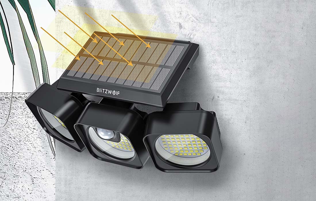 Die Solar-Bewegungssensor-Lampe ist eine moderne Art, Ihr Zuhause zu beleuchten. Die Lampe verfügt über ein verbessertes Solarpanel und einen PIR-Bewegungssensor. Drei mit 218 LED-Lampen ausgestattete Lichtquellen sorgen für einen weiten Lichtwinkel. Mit dem Schwenkwinkel kann die Lampe an Ihre Bedürfnisse angepasst werden. Darüber hinaus bietet die wasserdichte Abdeckung Schutz vor widrigen Witterungsbedingungen.