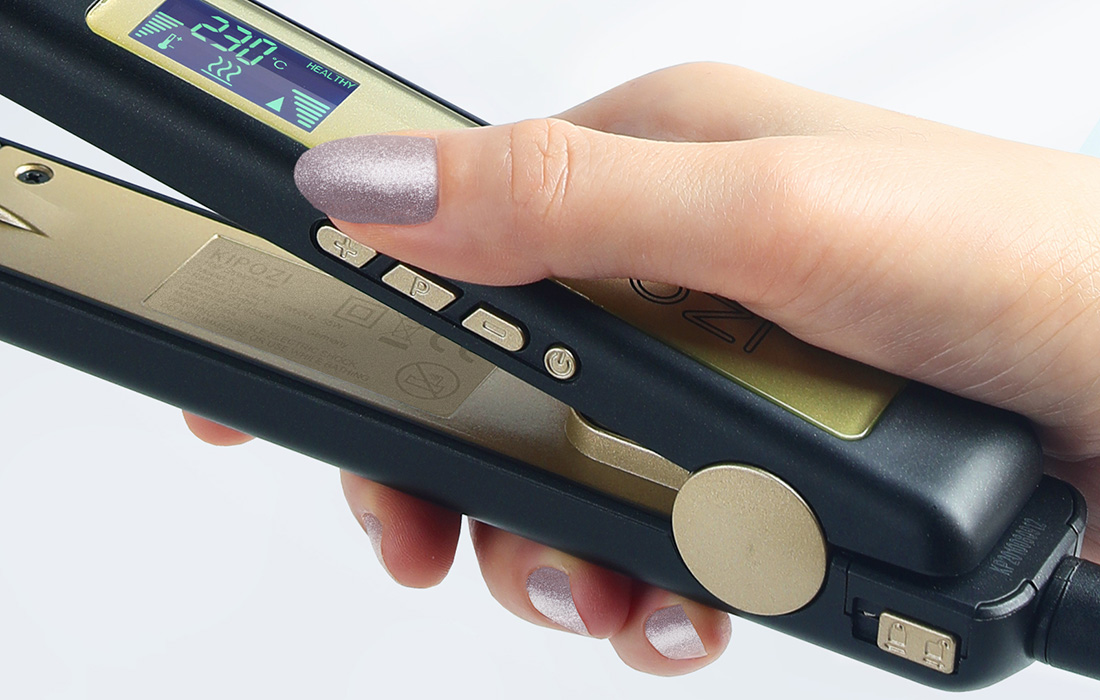 Der Kipozi Glätteisen ist perfekt für verschiedene Haartypen. Es ermöglicht Ihnen, die Temperatur zwischen 80-230 °C (170-450 °F) einzustellen. Der gewählte Wert wird auf dem eingebauten LCD-Bildschirm angezeigt. Es ist auch möglich, die Einheit zu wechseln - °C oder °F. Sie können die Temperatur manuell einstellen oder aus 3 verfügbaren automatischen Modi wählen: 140 °C (270 °F), 180 °C (350 °F) und 210 °C (410 °F). Die erste ist ideal für feines Haar, die zweite für geschädigtes oder gefärbtes Haar und die dritte für gesundes Haar.