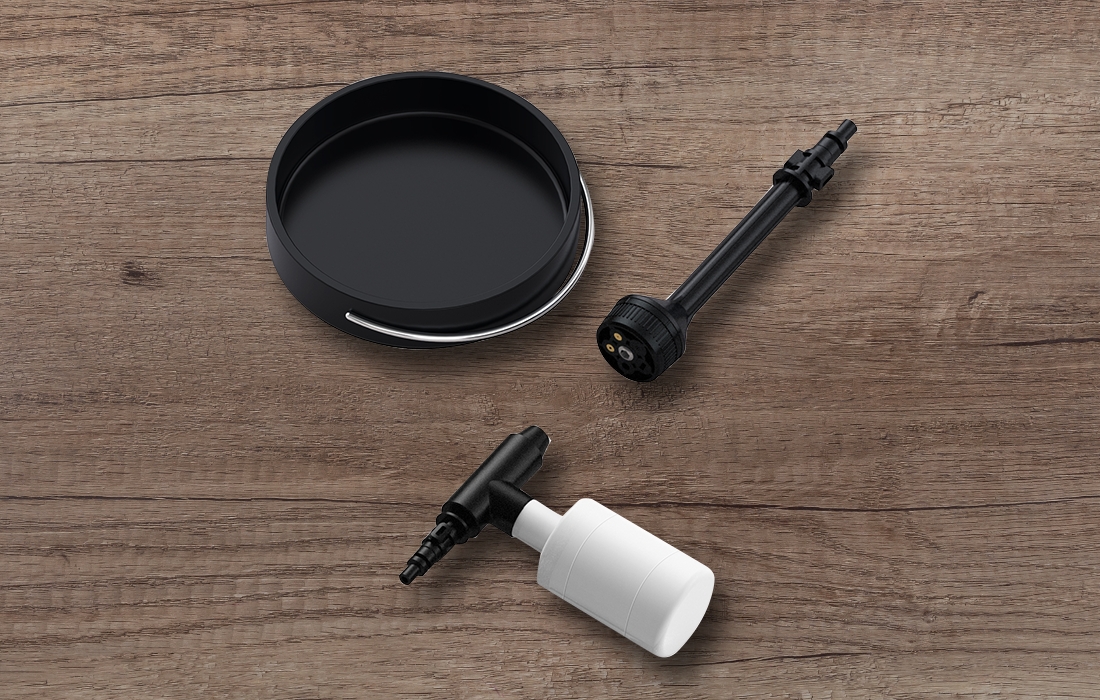 CPBD000001 sind für den Baseus CRDDSQ-01 Hochdruckreiniger ausgelegt. Es wird mit Zubehör geliefert, mit dem Sie Ihr Auto, Ihren Vorderzaun oder Ihre Terrasse leicht reinigen können. Die 5-in-1-Düse verfügt über 5 Wassersprühmuster. Drehen Sie die Düse, um das Muster anzupassen. Die Packliste enthält auch einen ausklappbaren Eimer und einen Behälter, in den Sie Waschmittel für die Autowaschanlage geben können.