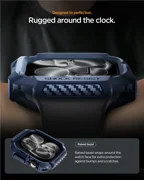 Innovative Schutzhülle für die Apple Watch. Hergestellt aus haltbarem und flexiblem, abriebfestem TPU-Kunststoff. Rugged Armor ist mit glänzender Karbonfaser beschichtet, die eine elegante Karbontextur erzeugt. Das Produkt ist passgenau, voll funktionsfähig, schränkt den Zugang zu externen Anschlüssen nicht ein und schützt das Gerät effektiv vor Kratzern oder Stürzen. Rugged Armor besticht durch sein modernes Design!