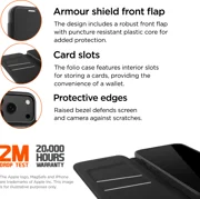 Eiger North Folio Magsafe BrieftascheEntwickelt für alle, die viel unterwegs sind! Das North Folio Magsafe Case verfügt über 2 Kreditkartenfächer und ist damit das perfekte Accessoire für jeden Tag. Dank Magsafe-Kompatibilität können Sie Ihr Handy auch unterwegs aufladen. Das Folio-Design umfasst eine integrierte Hülle für zusätzlichen Schutz, während die gepanzerte Frontabdeckung Ihren Bildschirm schützt.KEY FEATURES