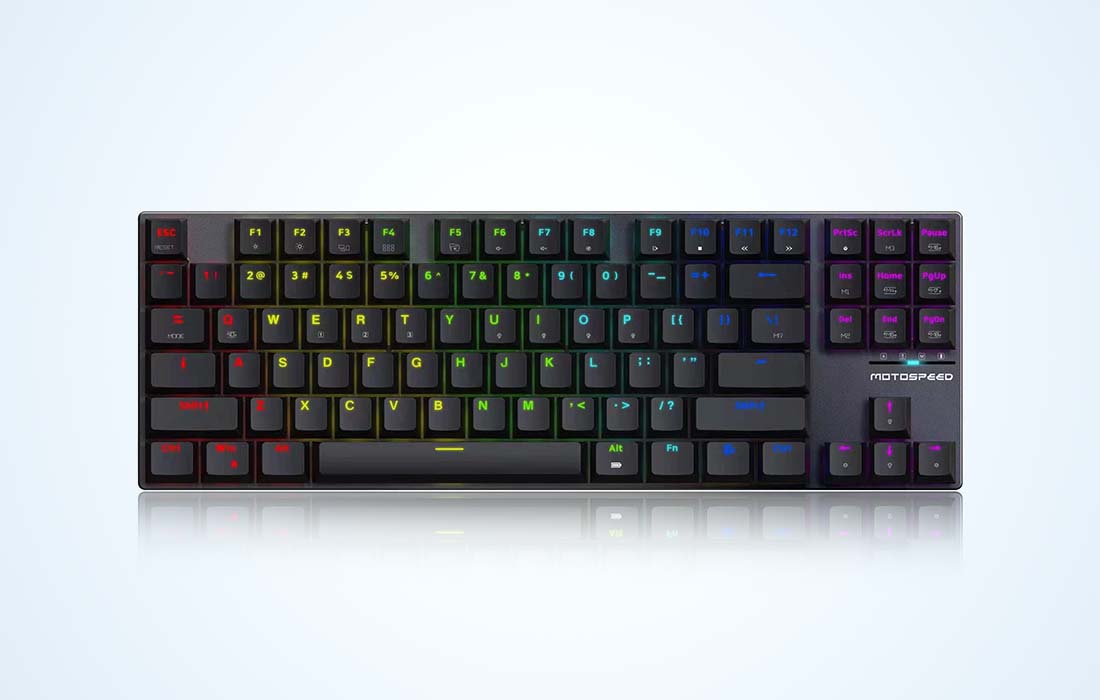 Die mechanische Motospeed BK75-Tastatur ist mit 87 Tasten ausgestattet und bietet schnelle, reibungslose Leistung und Komfort. Sie können es auf zwei Arten mit Ihrem Computer verbinden - drahtlos (über Bluetooth 5.0) oder mit einem USB-Kabel. Das Gerät verfügt außerdem über eine Gaming-RGB-Hintergrundbeleuchtung, deren Farbe Sie nach Ihren Wünschen anpassen können.